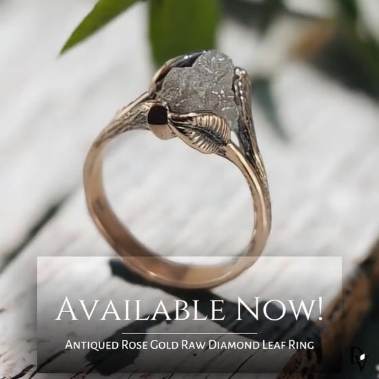 Large Floating Raw Rough Diamond Engagement Ring in 14k Rose Gold, Antiqued Finish